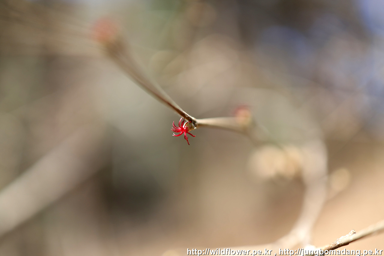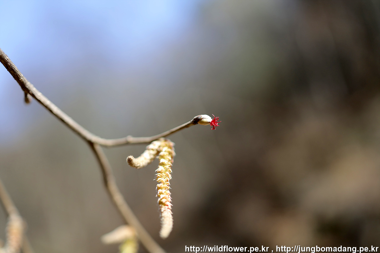 개암나무 - 암꽃(적색) , 수꽃(노란색)