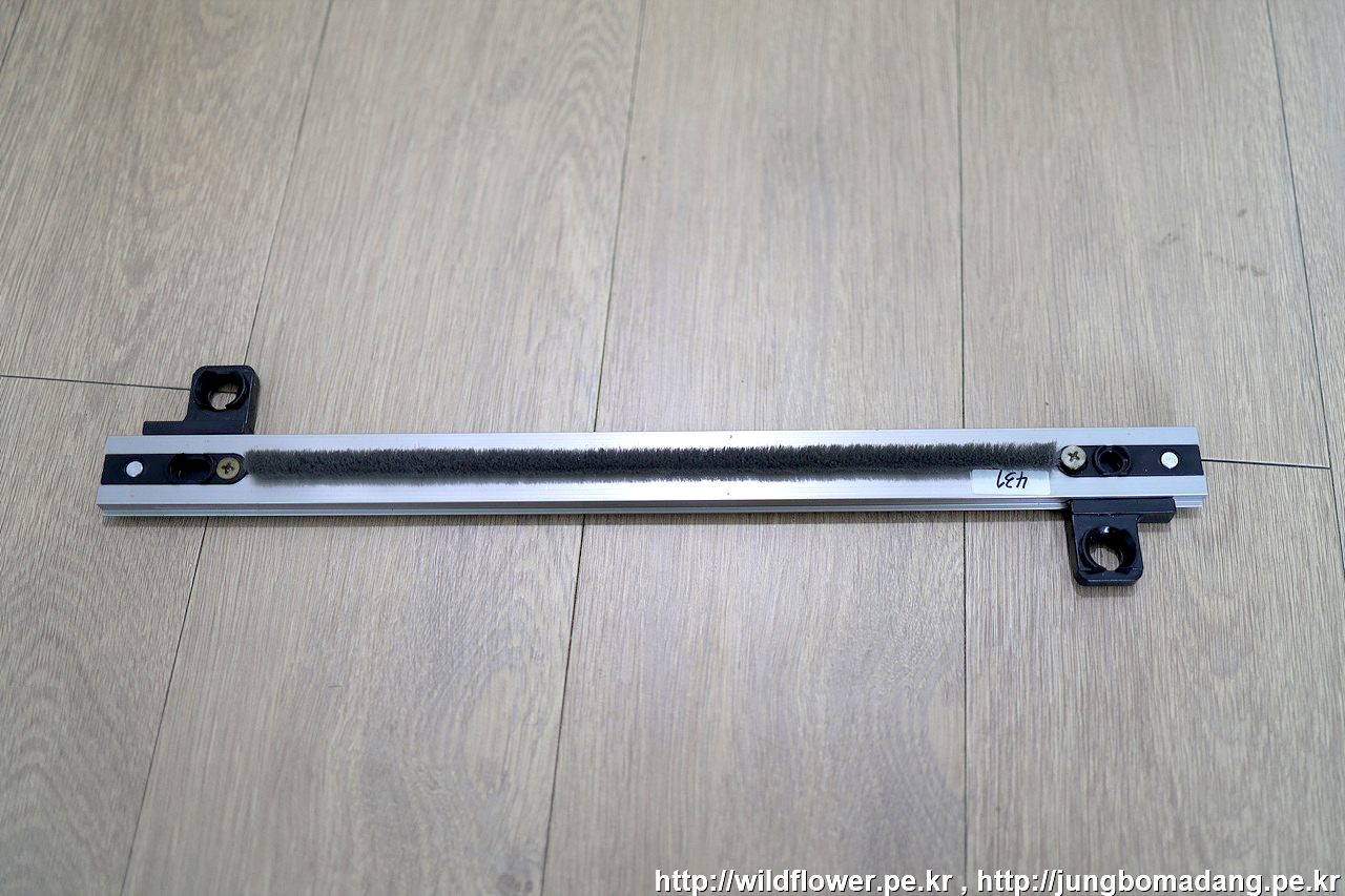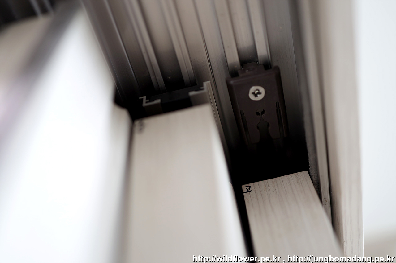 롤러가 레일 정중앙에 위치 되면 이렇게 틈이 일정하게 보입니다.