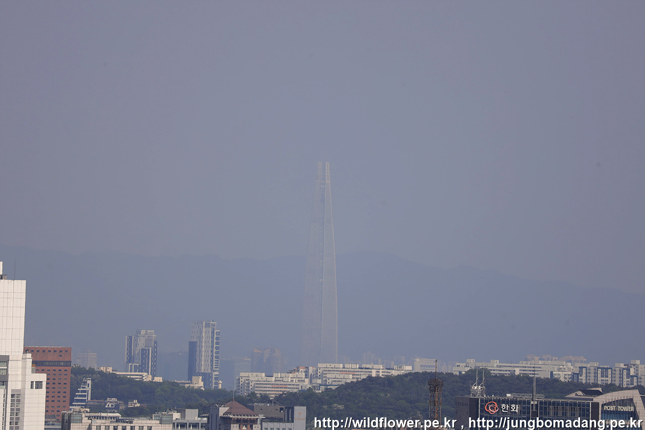 인왕산과 저 뒤 왼쪽에는 북한산 중간에는 북악산이 보입니다.