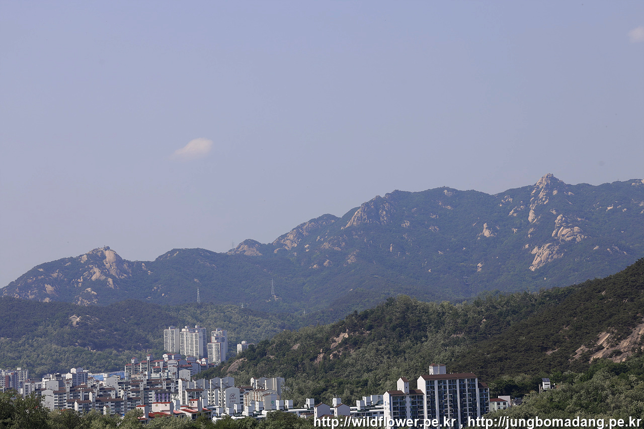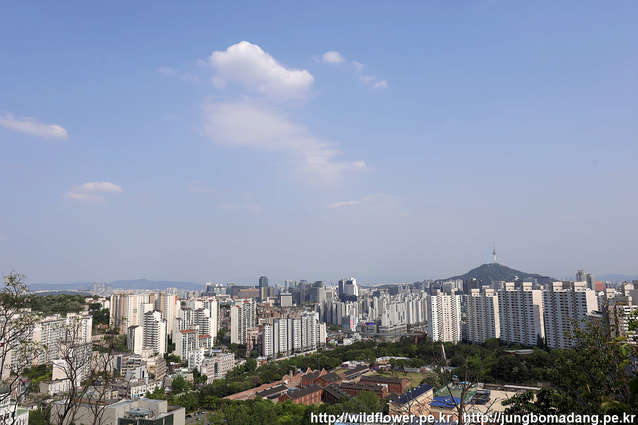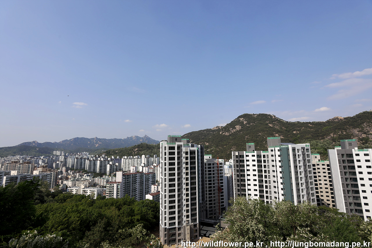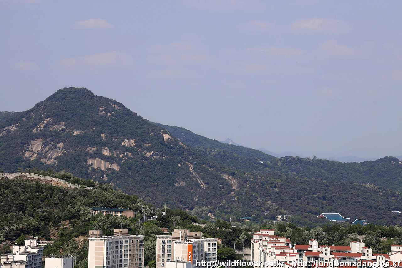 인왕산과 저 뒤 왼쪽에는 북한산 중간에는 북악산이 보입니다.