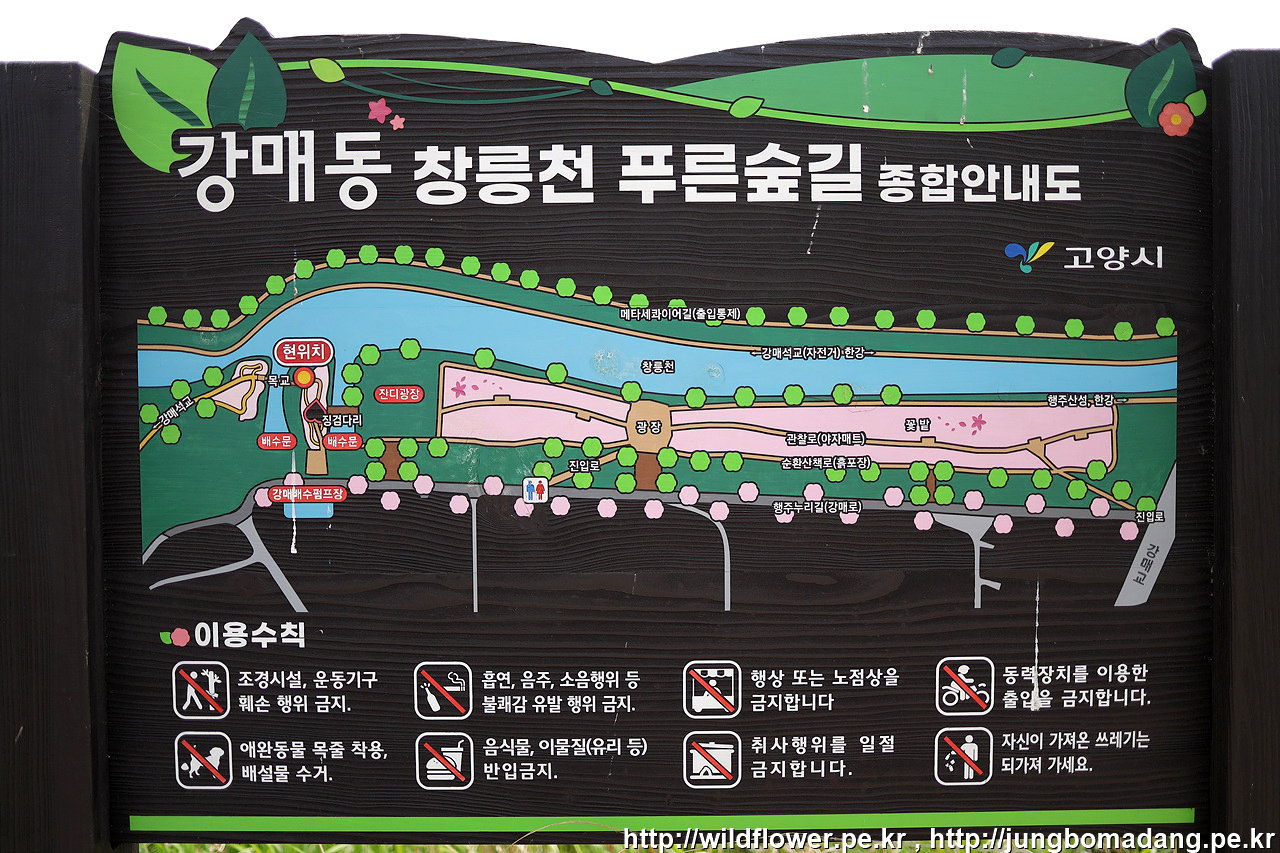 이번에도 우측으로 방향 전환을 합니다. 창릉천 푸른숲길을 따라 살살 가보기로 합니다. 이참에 최종 목적지(반환점)은 북한산국립공원 북한산성탐방지원센터로 정했습니다.