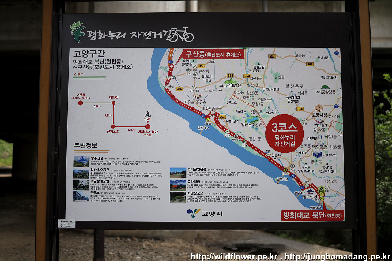 성산대교와 마주하는 삼거리에서 왼쪽, 오른쪽 어디로 갈까? 오른쪽으로 방향을 전환합니다. 월드컵대교, 가양대교, 마곡대교(공항철도), 방화대교를 지나다보니 눈에 띄는 안내판 하나.
