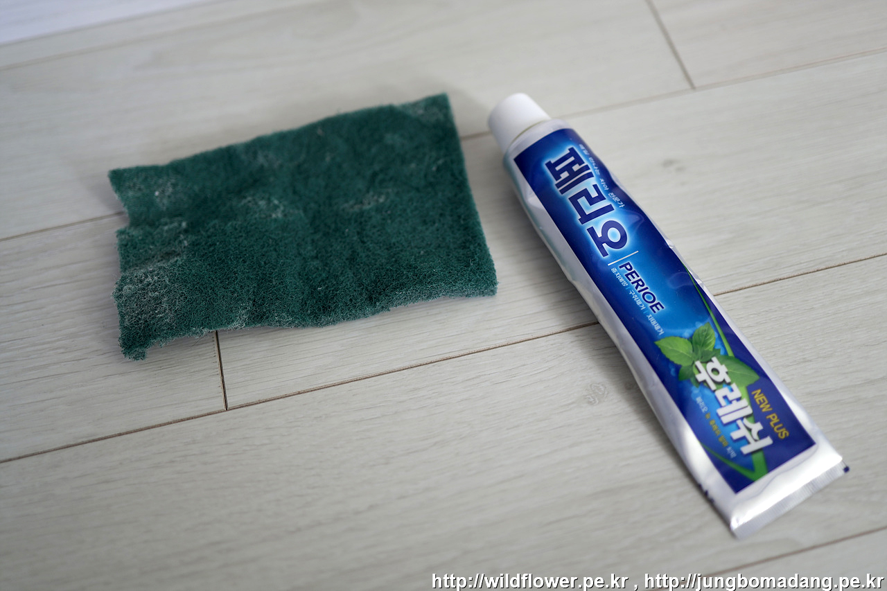 3. 치약을 청수세미에 뭍혀서 지워보니 지워지는 것 같네요.