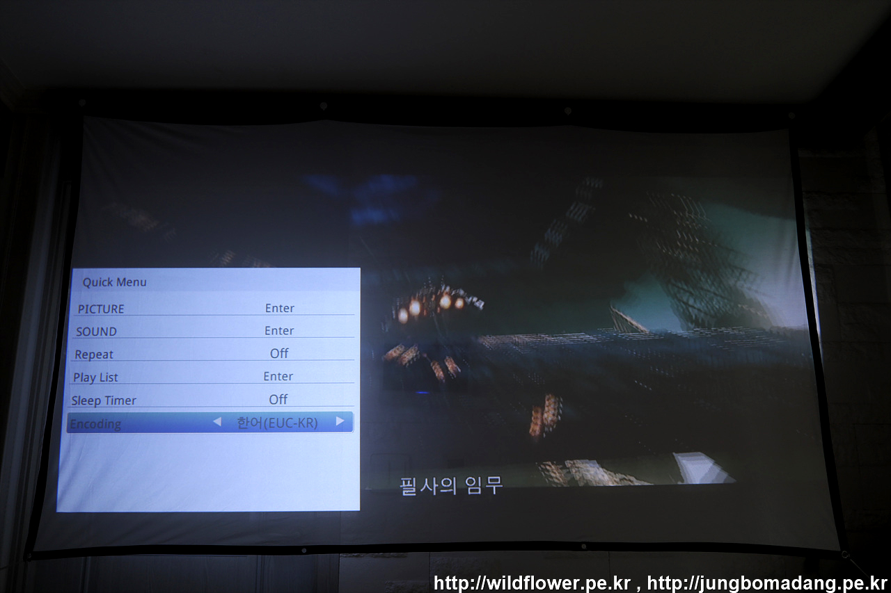 근데, 빔 프젝터에 인코딩 변경 메뉴가 있다면, 일부러 이 방법을 사용하지 마시고, 빔 프로젝터에서 인코딩을 변경하는 방법을 추천 드립니다.
