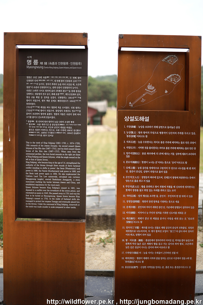 좌측의 홀로 있는 능은 숙종의 세번째 왕비인 인원왕후, 우측의 쌍릉이 숙종, 두번째 왕비인 인현왕후입니다.