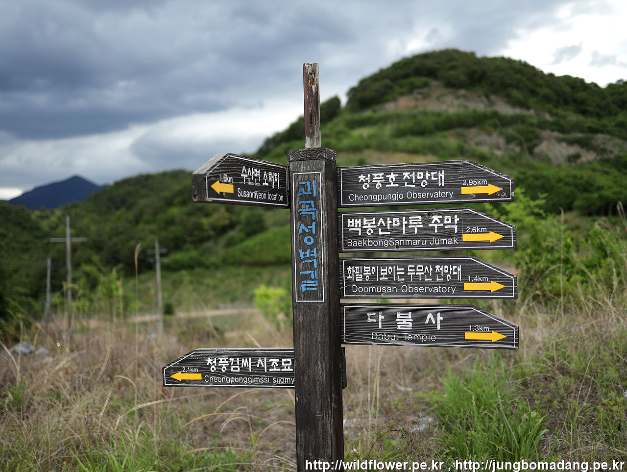 제천 시내로 가기 위해 나름 교톻편이 괜찮은 수산면으로 걸어 가고 있습니다. 시작한 곳은 버스가 하루 3대만 운행합니다.