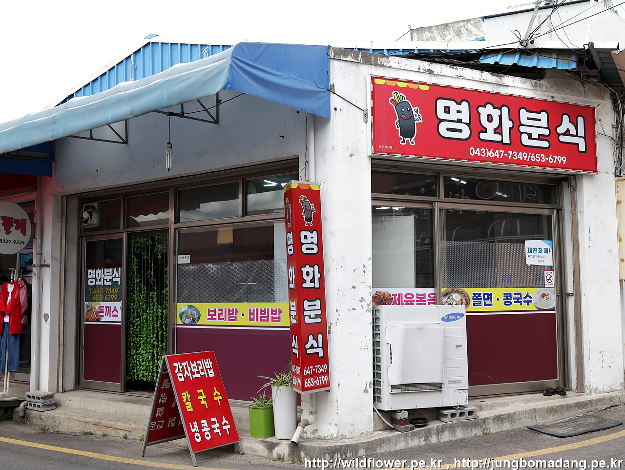 아무래도 밥 먹을 시간은 충분할 것 같아서, 식당 두 곳은 11시 30분 부터 영업 한다고 해서 실패하고, 세번째 도전한 명화분식집에서 식사 된다고 해서 쫄면, 물냉면(메뉴판에는 없지만 6000원) 두개를 주문하니 여사장님이 잠시 멈칫 ㅋㅋㅋ
