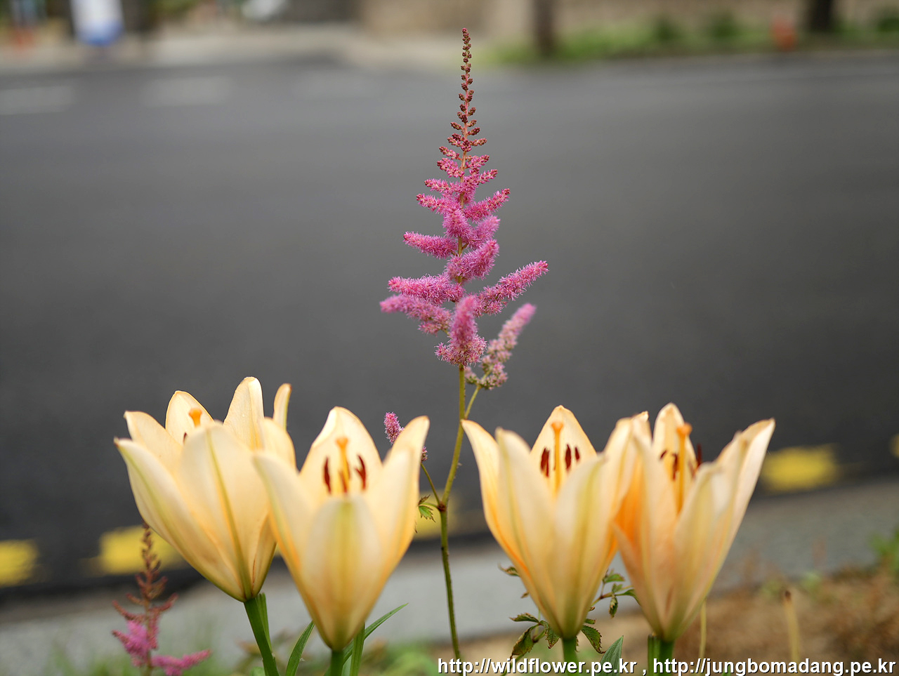 애기원추리 - 호리꽃등에가 앉아 있습니다.