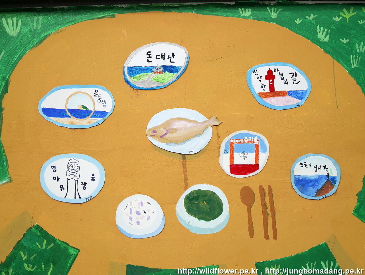 추자도에 대한 대표 이미지 및 관광지를 벽화로 그려 두었네요.