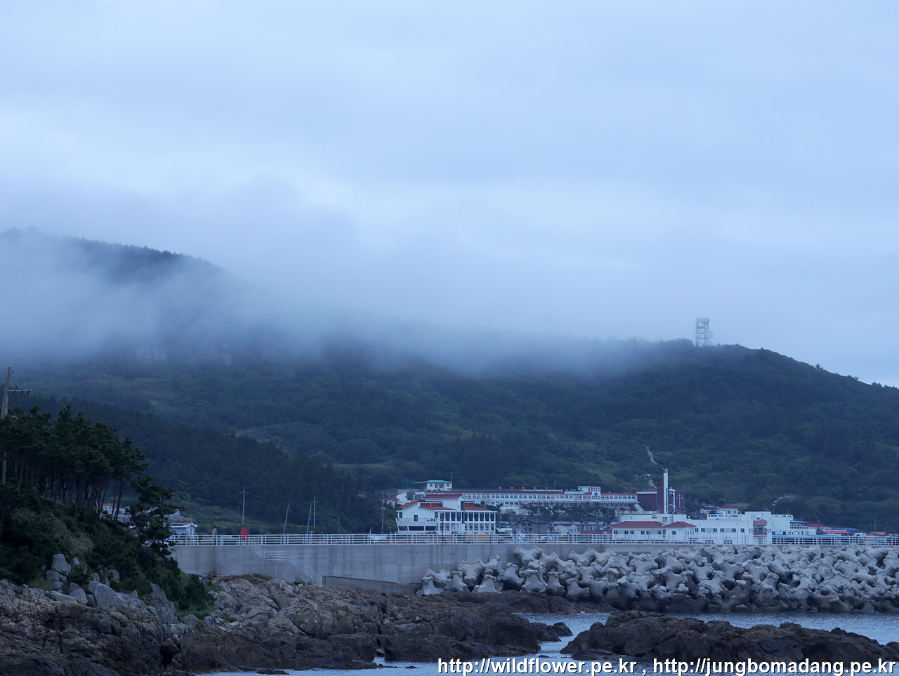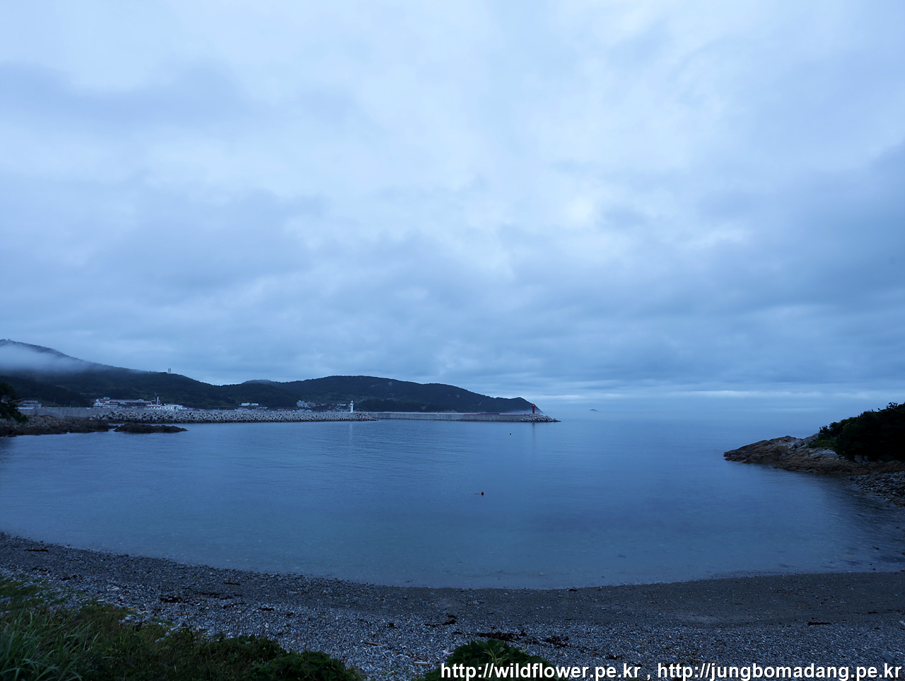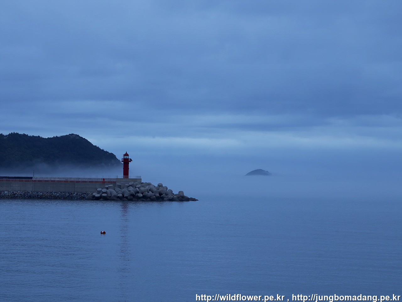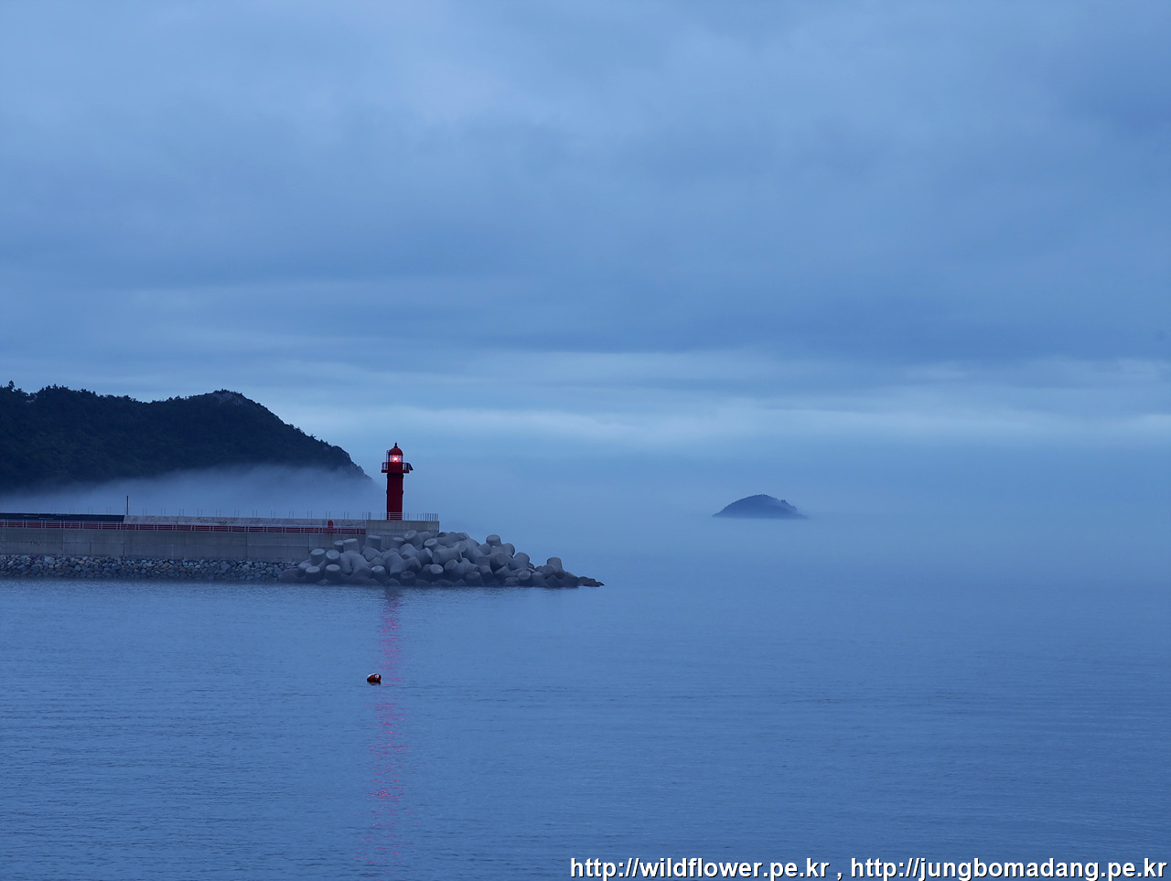흐린 날씨 옅은 해무로 일출은 못보고 등대를 바라 봅니다. 신양항 입니다.