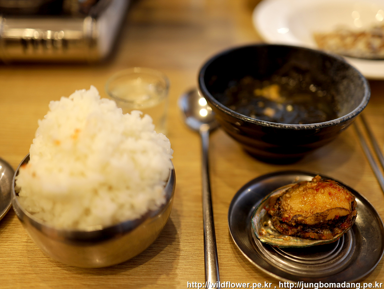 담수인 지 바닷물인지 궁금해서 살짝 찍어 먹어 보니 아주 살짝 짠맛이 나네요.
