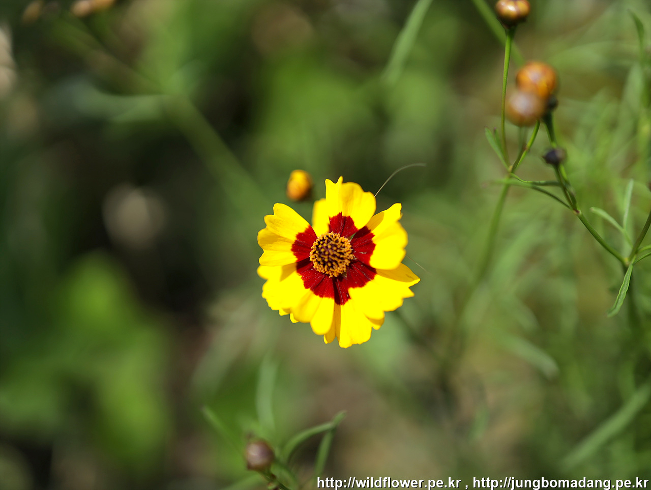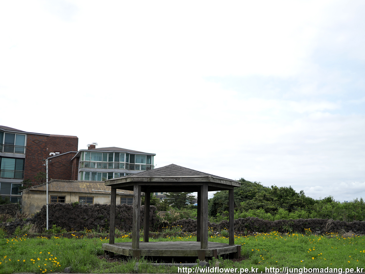 정자 주변에 노란 금계국이 꽃밭이네요.