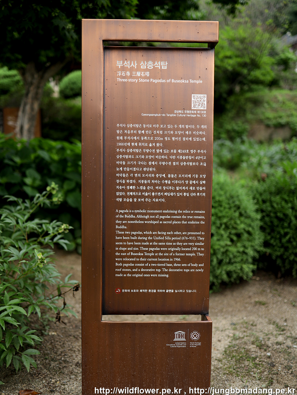 영주 부석사 삼층석탑 뒤로 우측에 무량수전이 보입니다.