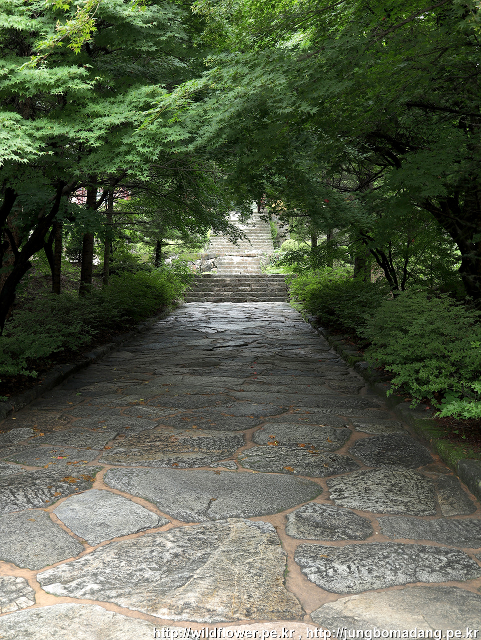 좌측은 조사당 오름 길, 우측은 무량수전으로 내려가는 길.
