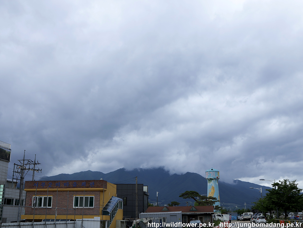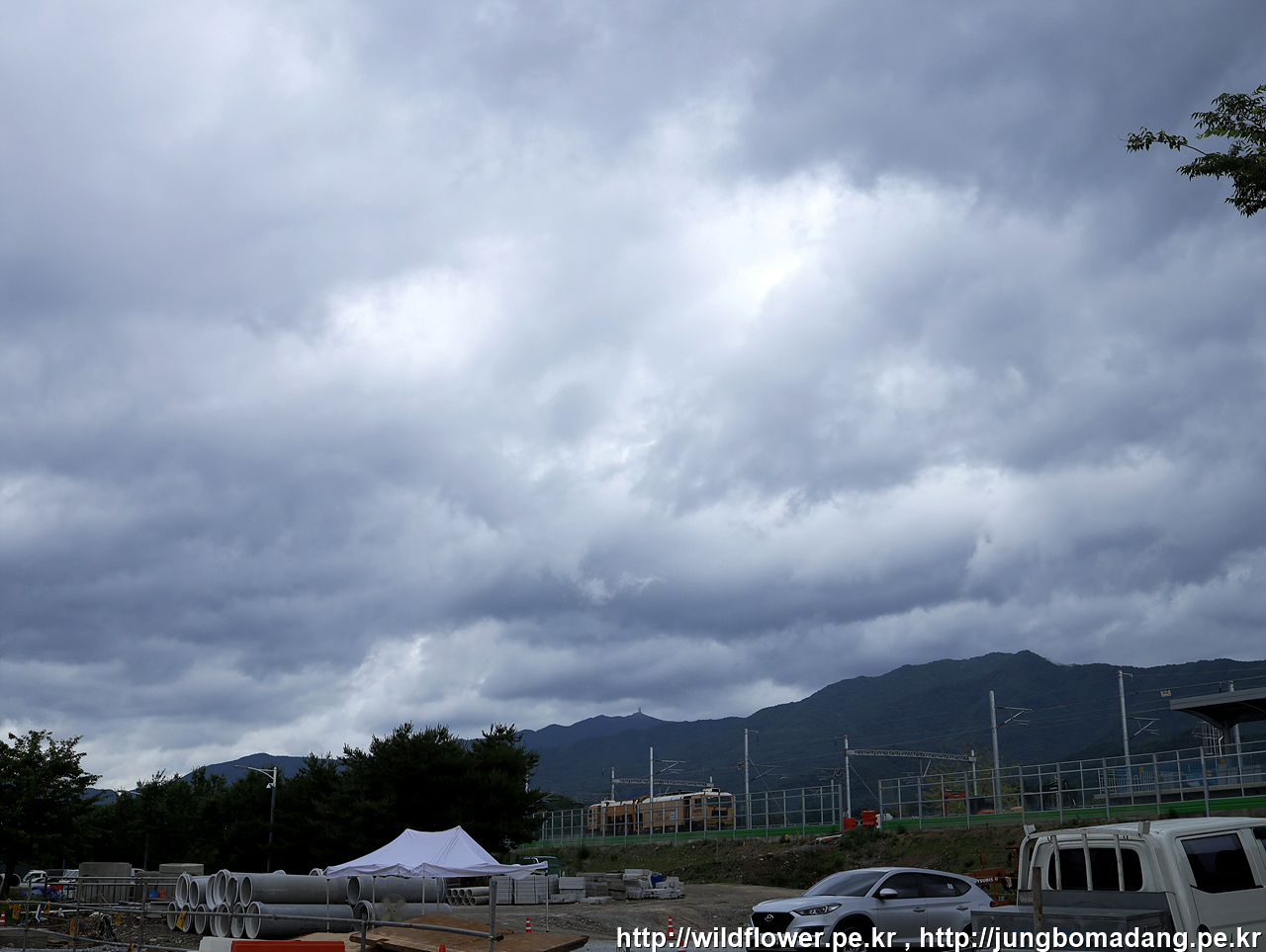 풍기역 뒷편으로 소백산 능선이 보입니다. 좌측 끝으로 천문대도 확인할 수 있구요. 날이 흐려 비가 많이 올 수도 있을 것 같네요.
