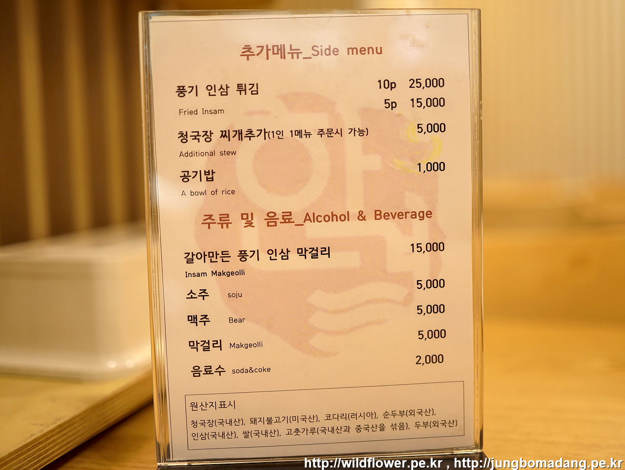 맛은 먹을만 했지만, 가격이 다소 높은 듯 하고, 무엇보다 막걸리를 5000원이나 받는다는 것이 좀 그래서 청국장만 열심히 먹었습니다.