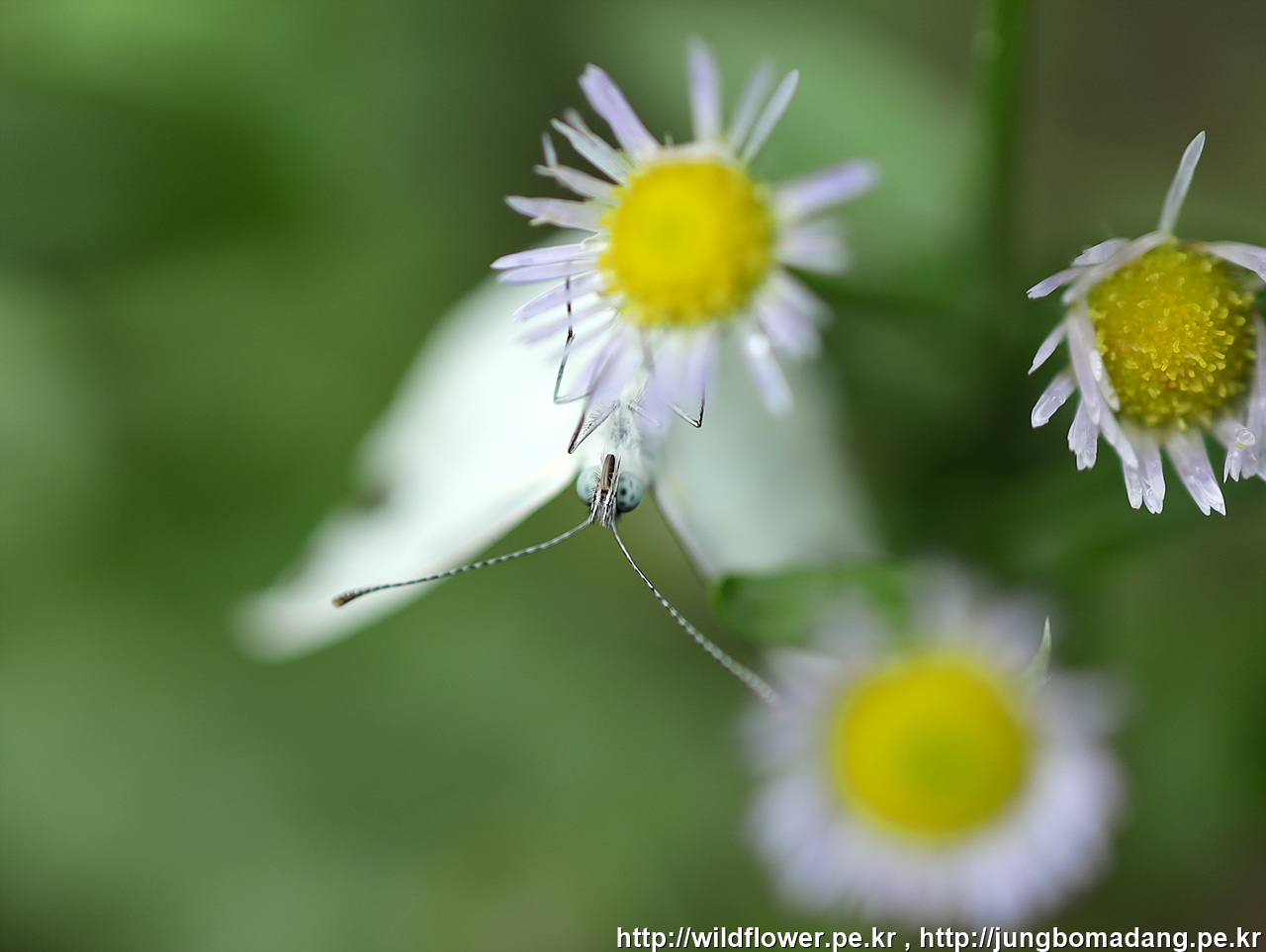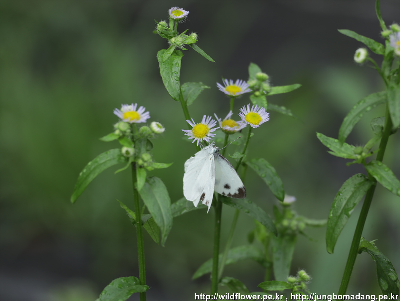 배추흰나비가 한마리 보이는 데, 거꾸로 매달려서 움직이지 않습니다 - 죽었나?