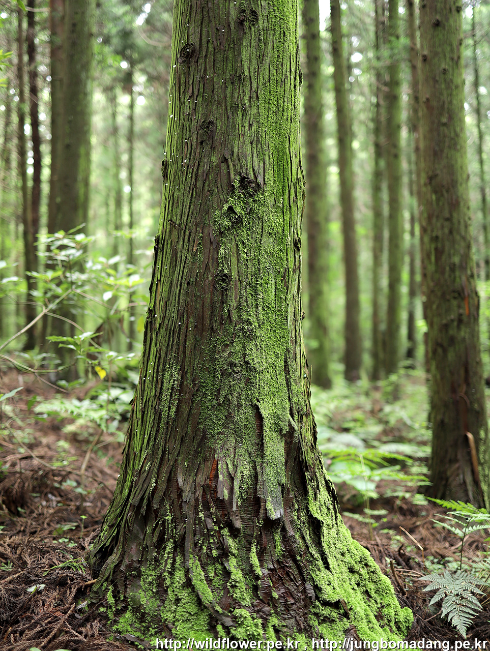 삼나무 - 제주어로 쑥대낭이라고도 합니다. 쑥대는 너무 쑥쑥 빨리 자란다고 하는 뜻이고 낭은 나무를 의미합니다.