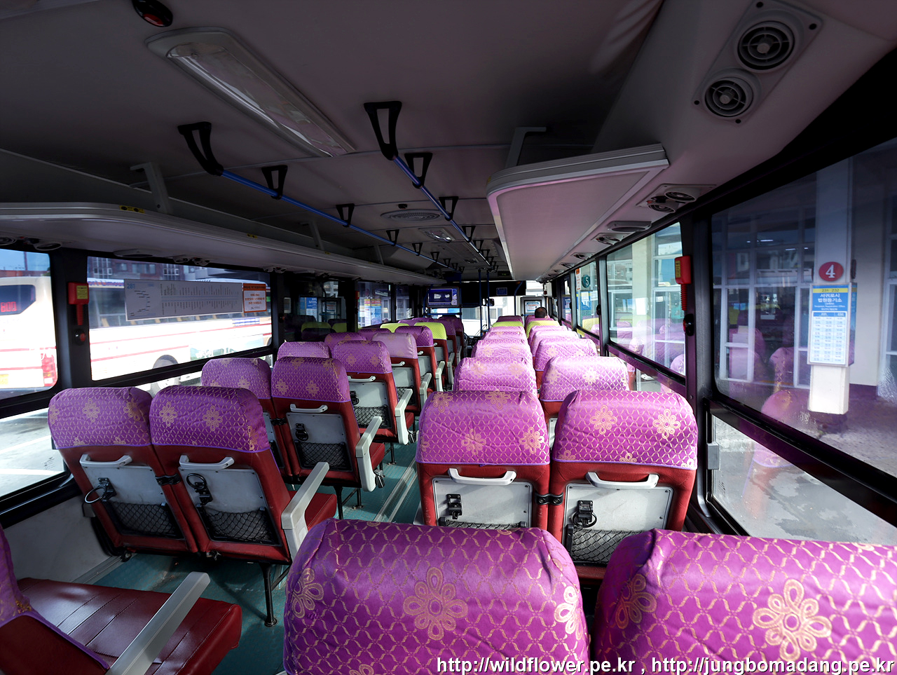 3번 버스 승강장에서 332번 시내버스를 타고 10분 후 제주시외버스터미널에서 하차합니다. 환승 전 근처 편의점에서 제주 막걸리 2병을 구매하고, 곧바로 환승을 위해 버스에 오릅니다. 손님이 별루 없어서 버스 내부 한 컷!