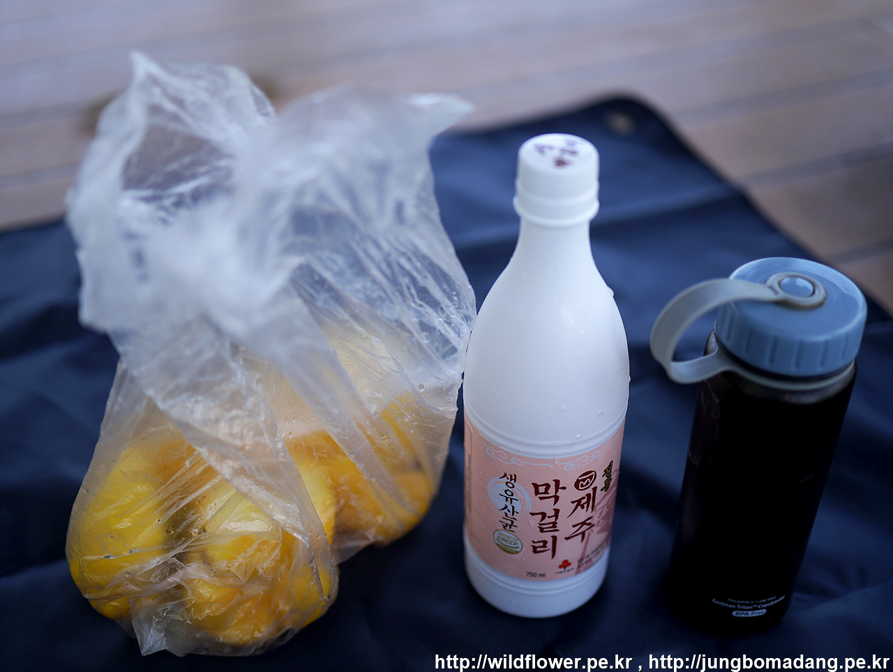어둠을 뚫고 하나로마트를 턴 후 자리를 잡고 자리돔과 함께 합니다. 한팩에 만원이네요. 내일을 위해 막걸리 한병은 남겨 둡니다. 보냉팩이 있어 가능한 일.