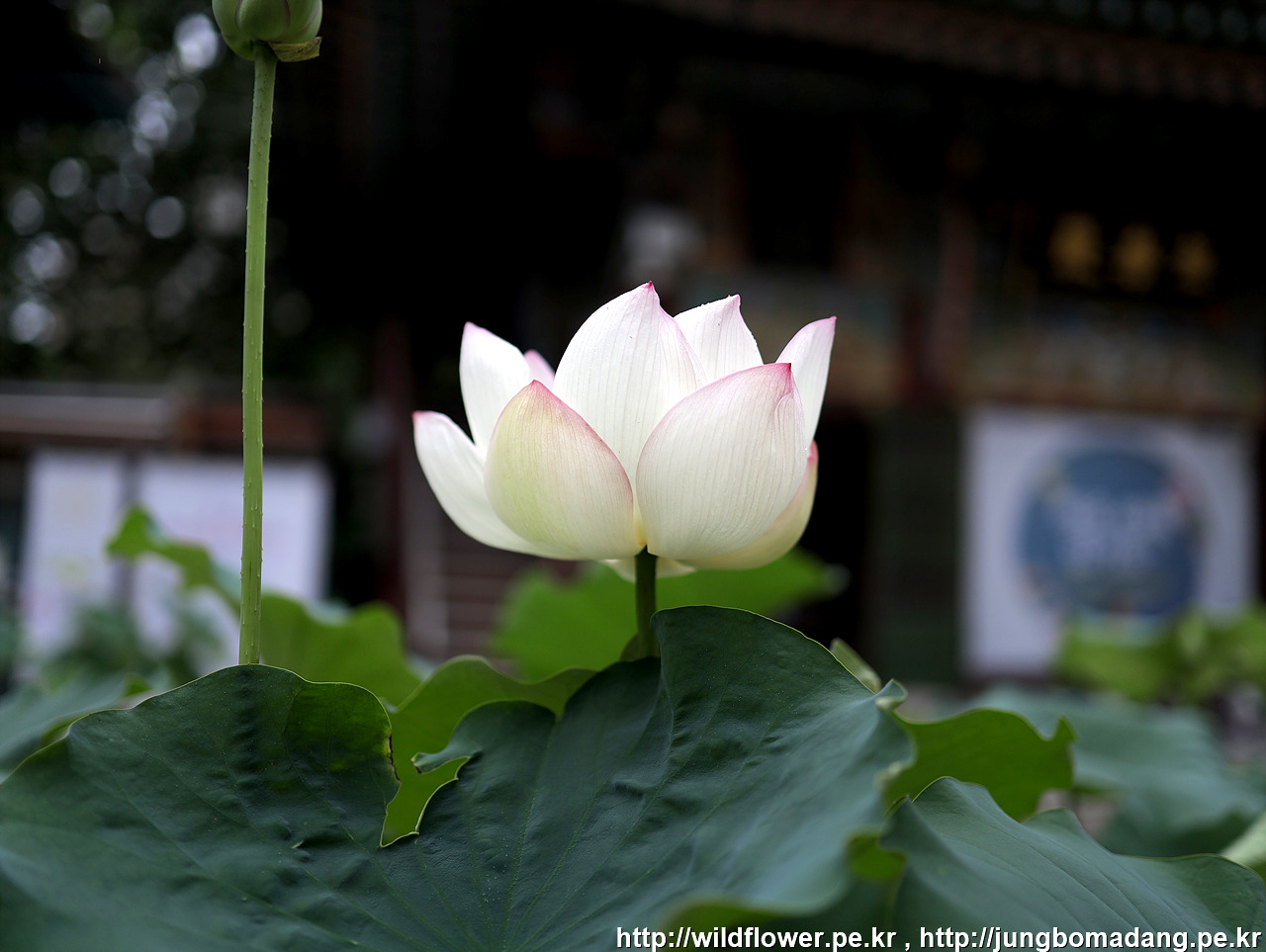 연꽃 - 연가등이 걸려 있는 곳은 흰색 연꽃인 백련을 비치해 두었네요.