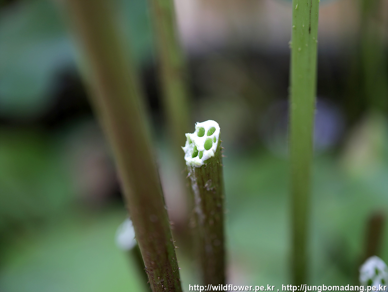 연꽃의 줄기를 자르면 이렇게 하얀 진액이 보이는 데,뮤신 성분으로 위벽을 보호하고 위염을 완화하는 효과가 있다고 합니다.
