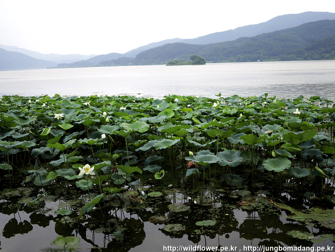 연꽃과 함께 큰섬이 보입니다.