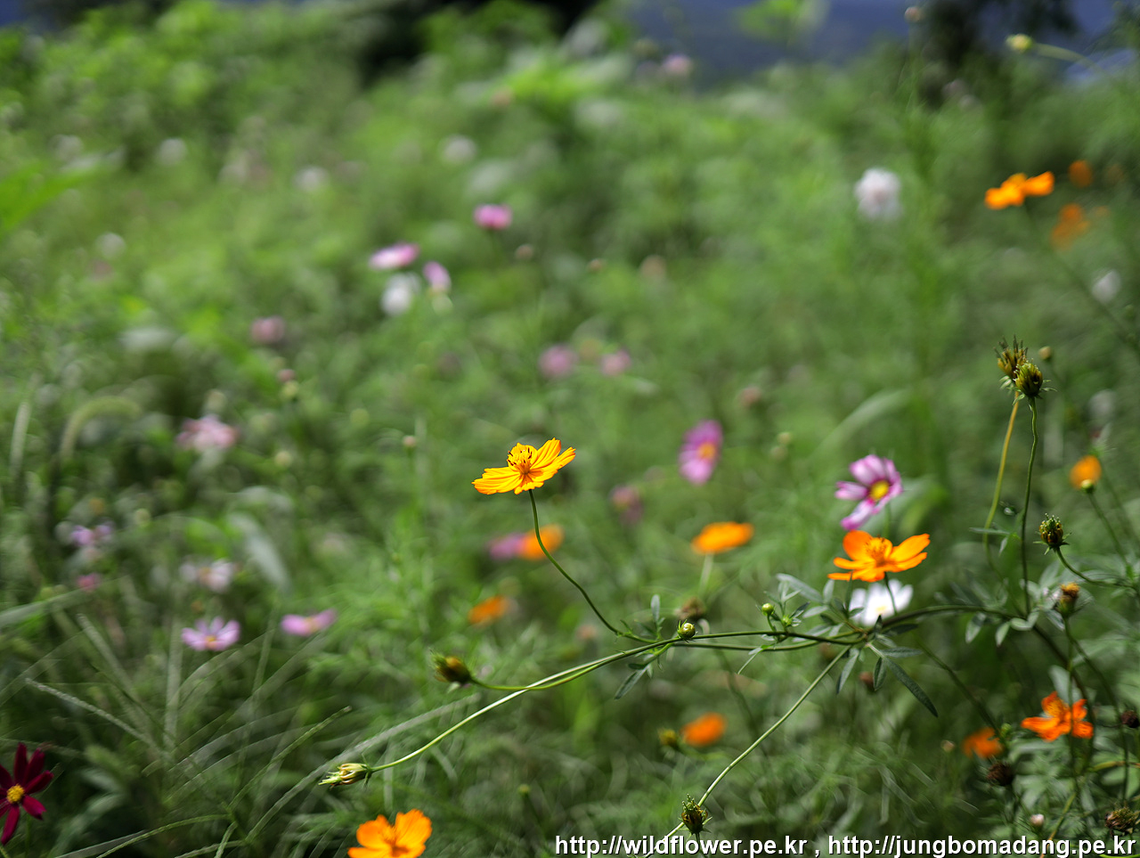 황화코스모스(노랑코스모스) - 몇 송이는 보이네요.