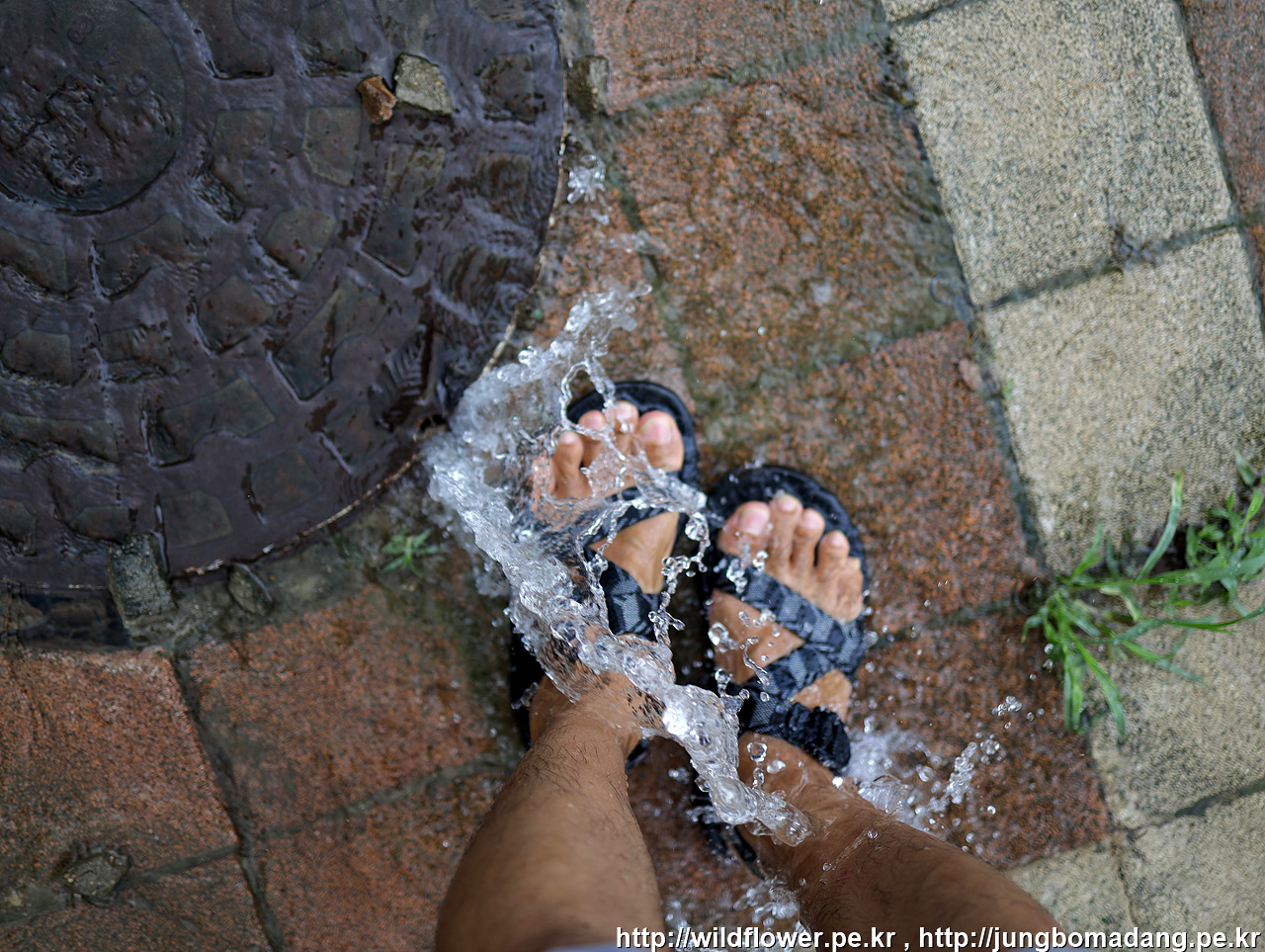 그리 더러워 보이지 않아서 발을 대어 봅니다.