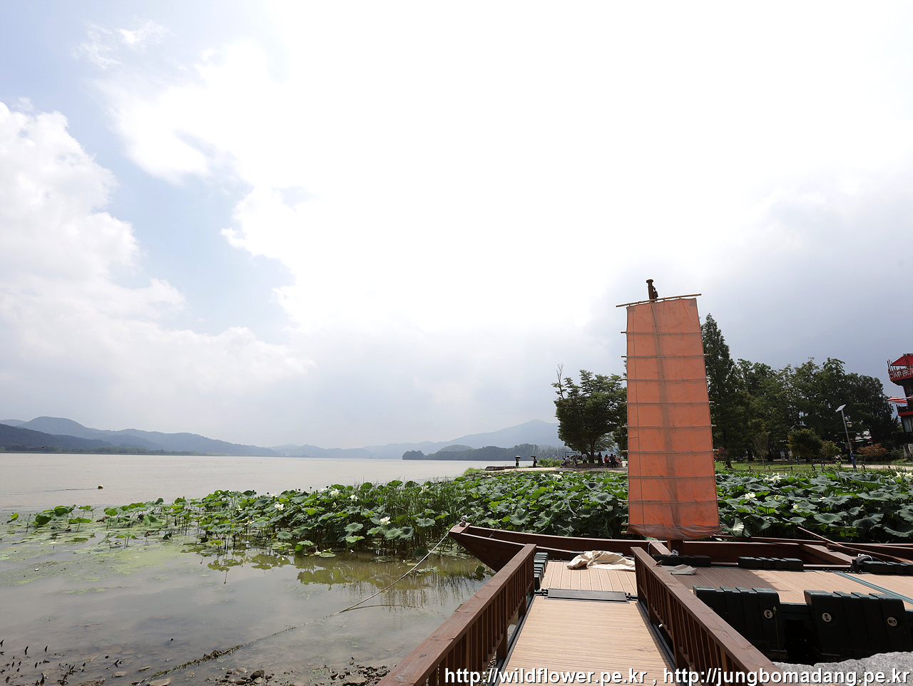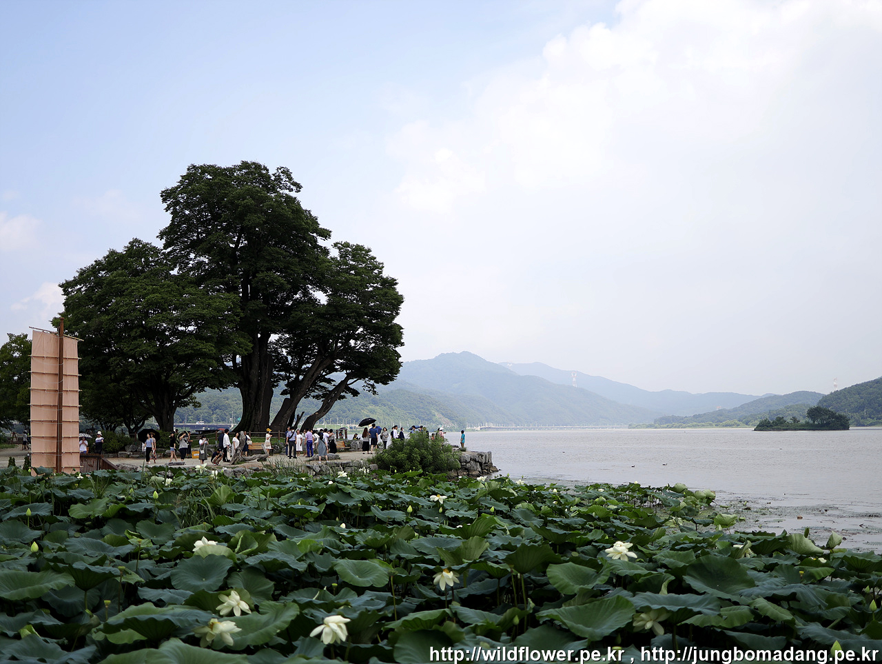 연꽃과 함께 큰섬이 보입니다.