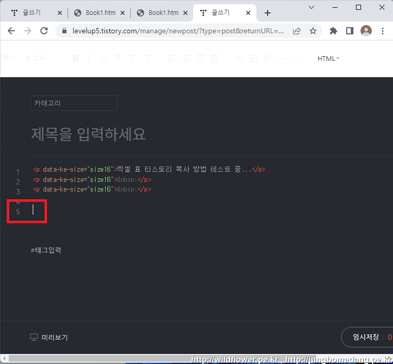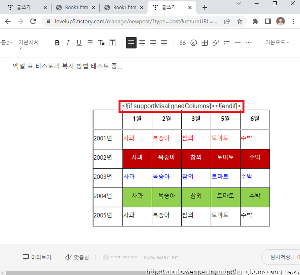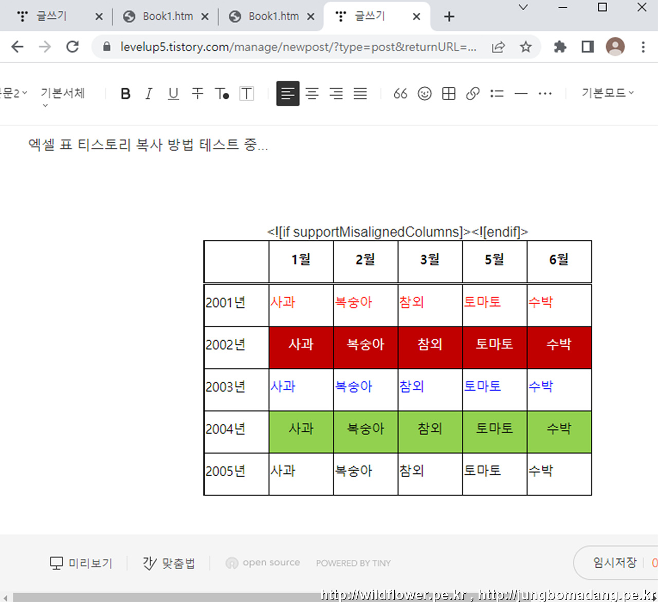 불편한 점 중 하나가 엑셀의 표를 복사해서 티스토리의 글쓰기 창으로 복사가 잘 되지 않는 점입니다.