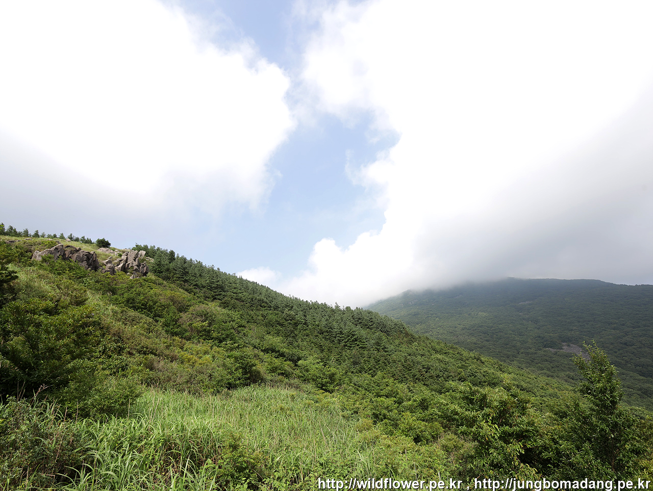 방금 지나온 서석대 방면입니다. 서석대 정상부는 운무에 살짝 가려 있네요.