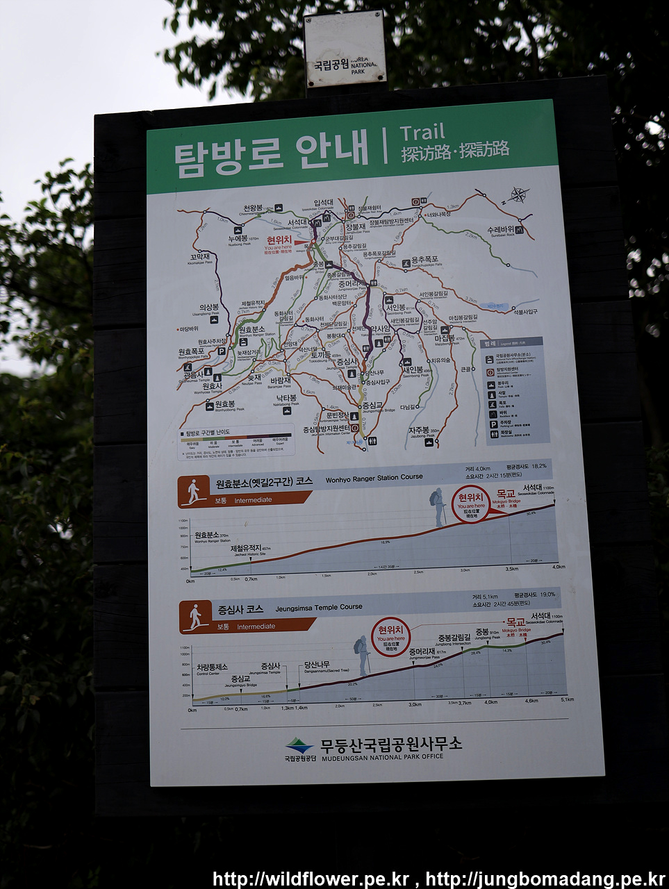 등산코스는 원효사-꼬막재-규봉암-장불재-중봉-중머리재-증심사 코스로 14.2Km 입니다.