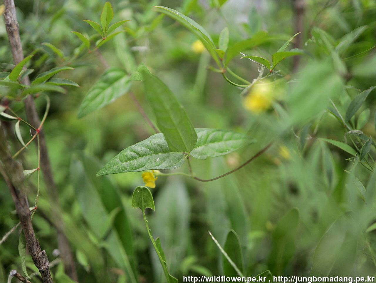차풀 - 잎. 잎 끝이 뾰족합니다.