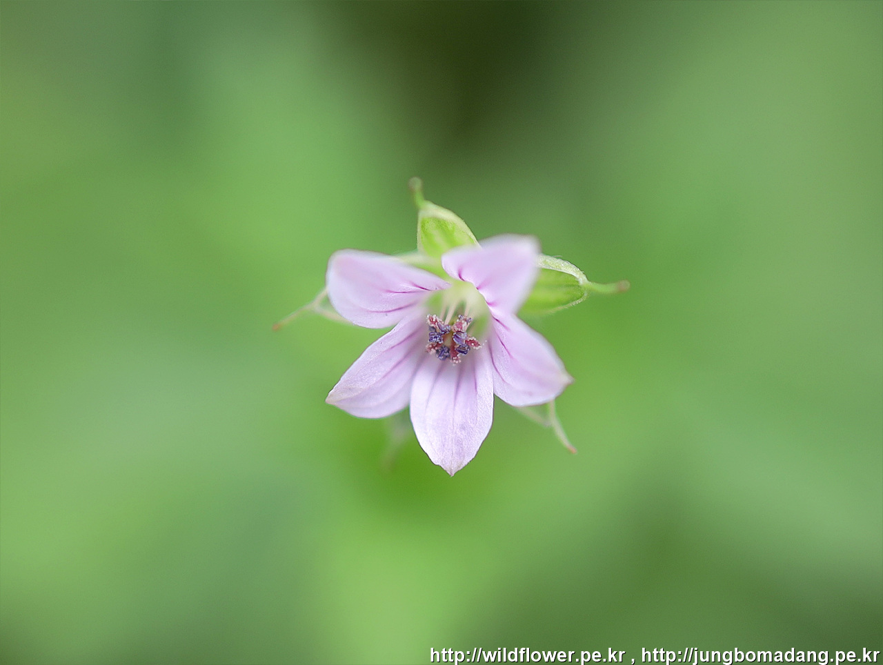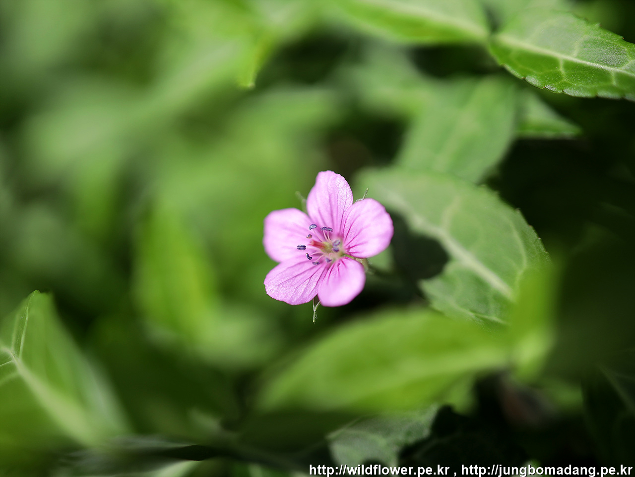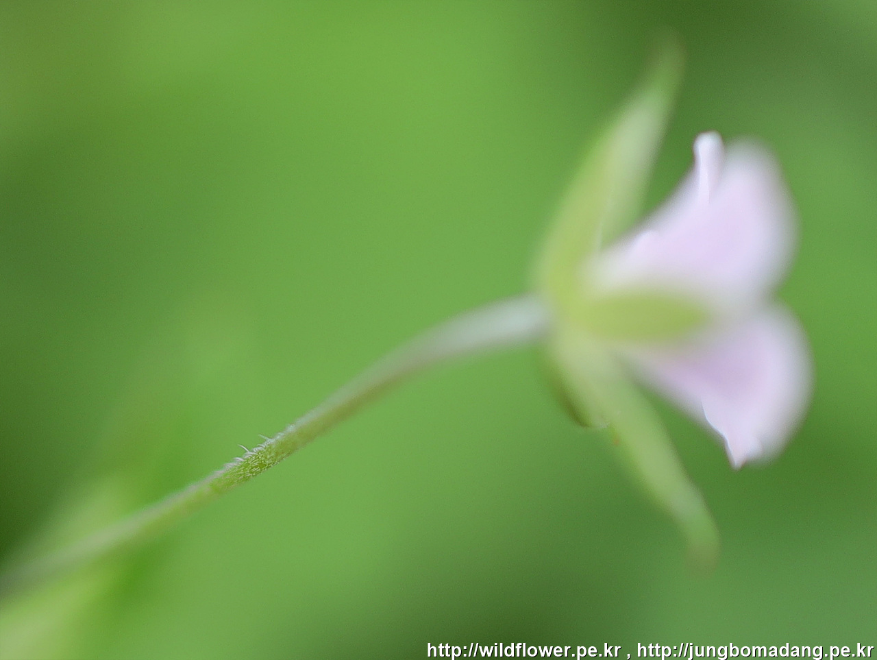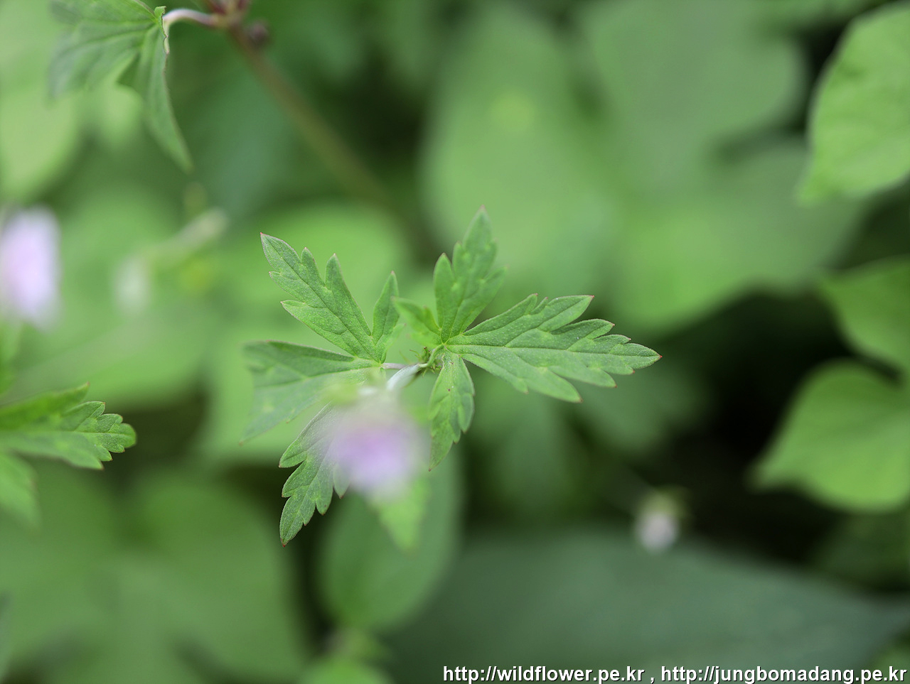 세잎쥐손이 - 꽃자루에 뒤로 젖혀진 털이 있습니다.