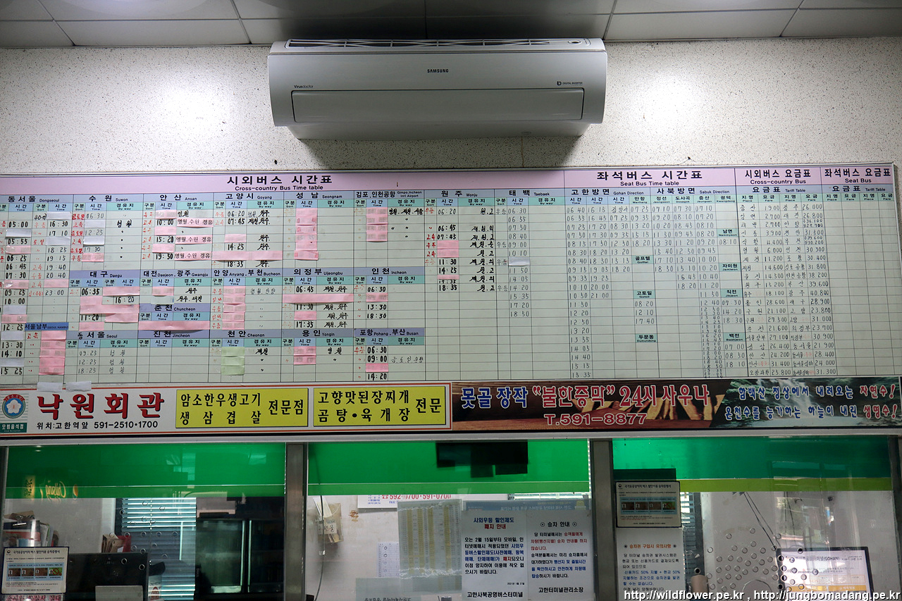 그나마 만항행 9시 40분 출발 버스가 5분 단축되어 9시 35분에 출발하는 것으로 변경되었네요. 지금이야 5분 더 빨리 가서 좋지만, 서울에서 올때는 막힐경우 못 탈 가능성이 그만큼 늘어나게 됩니다.