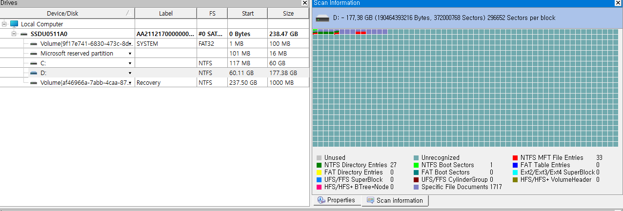 다행히 복구가 되었는 지 디스크 관리에서 확인하니 NTFS로 변경되었지만,