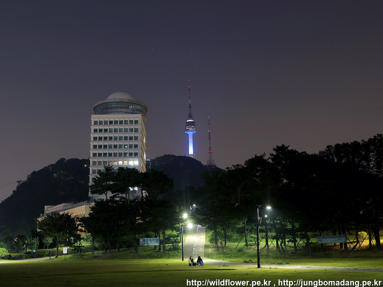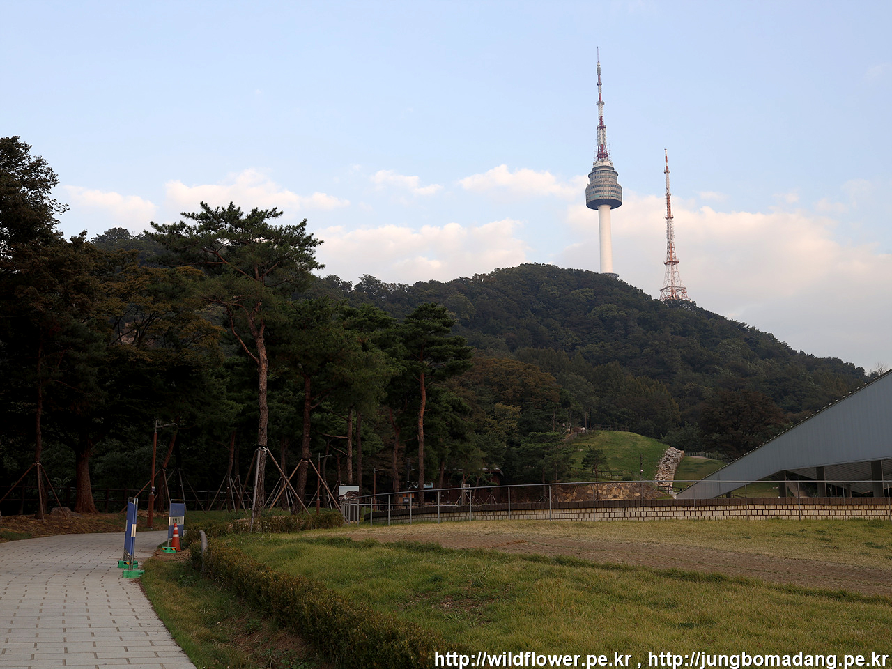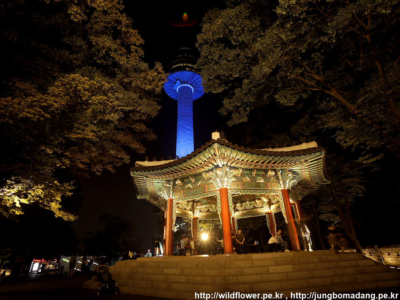 팔각정(우), 남산서울타워(중)