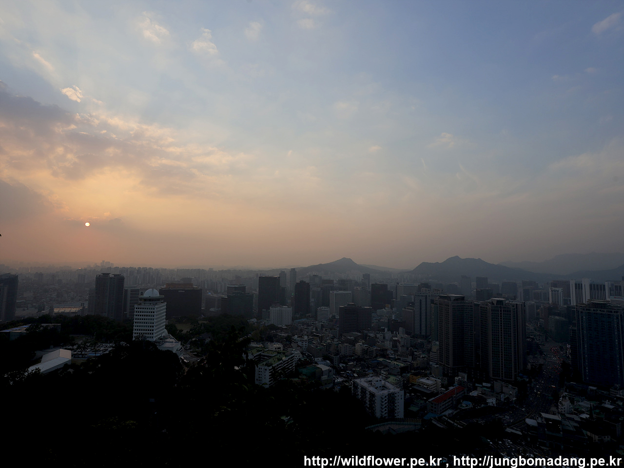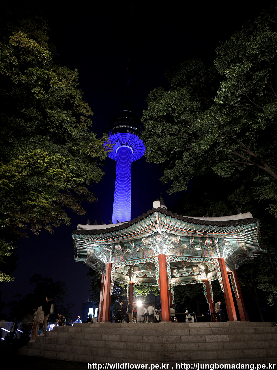 팔각정(우), 남산서울타워(중)