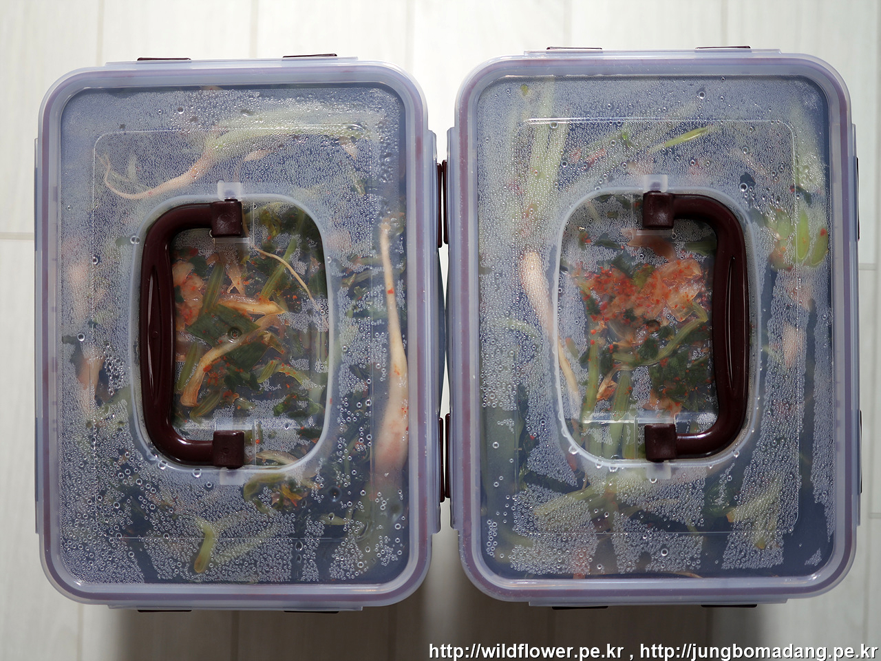 혹시 몰라서 7L 4개 샀는 데, 3개만 사오거나, 혹은 2개 사고 나머지 남은 열무는 다른 그릇에 임시로 담았다가 담날 7L 2통에 합쳐서 보관해도 될 듯 합니다.