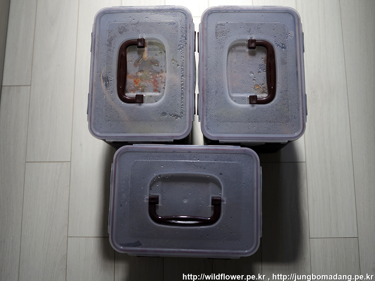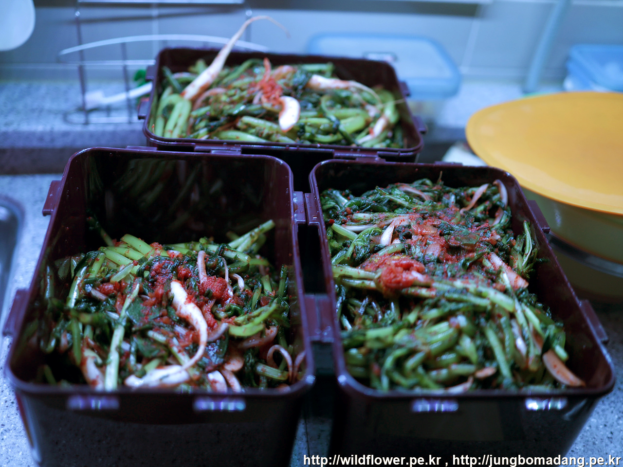 3단 절인 것을 물 뺄 데가 마땅치 않아서 탑을 쌓아 두었네요 ㅋㅋ