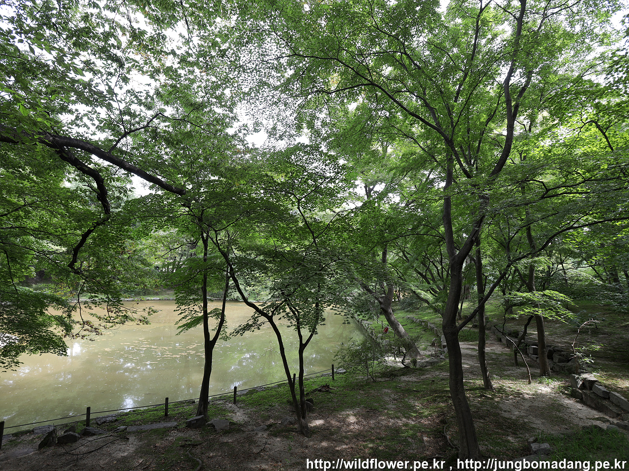 연못에 뭔가 노릇 노릇한 꽃들이 많이 보이네요.