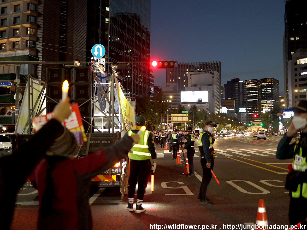 행진 시간입니다. 끝을 보기 쉽지 않습니다. 5대의 진행차량으로 나누어 구간을 나누어 1시간 가량 행진 후 다시 집결지인 청계광장 옆 서울 파이낸스센터로 모입니다.