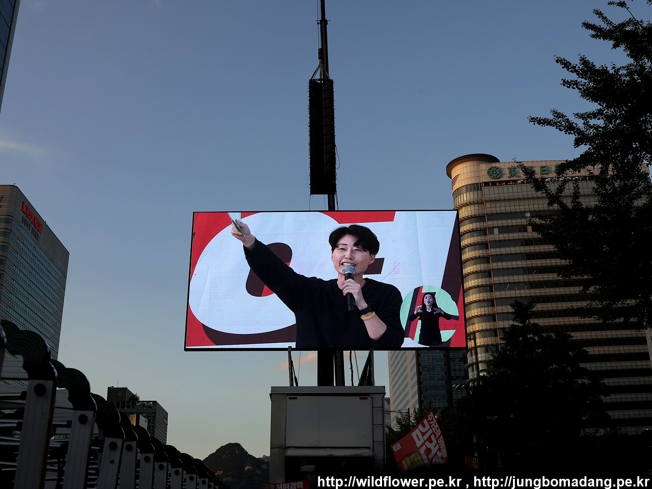 드디어 김건희 특검 윤석렬 퇴진 탄핵 9차 촛불대행진 현장에 도착합니다. 사전 행사는 17시, 본 행사는 18시에 시작하는 데, 카메라로 설치된 LED를 촬영하는 데, 플리커 현상 때문에 제대로 찍히지가 않습니다.
