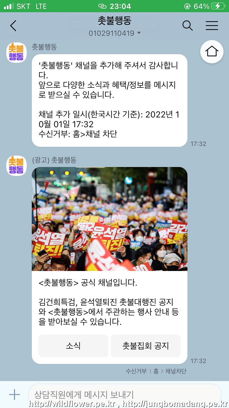 이와 같이 촛불행동 채널을 통해 여러분도 함께 하실 수 있습니다. 우리의 나은 삶을 위해 함께해 주십시요! 부탁 드립니다!