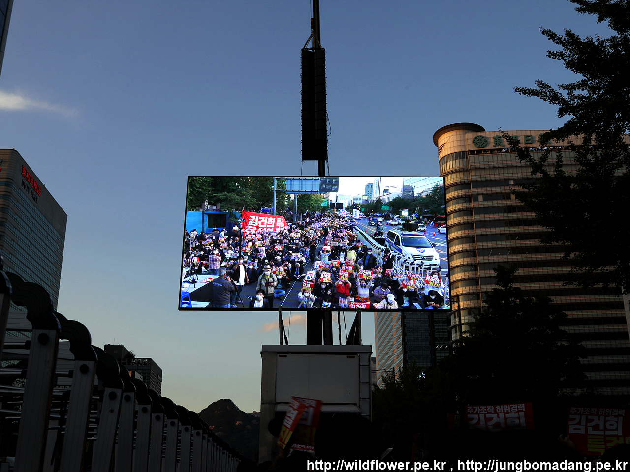 드디어 김건희 특검 윤석렬 퇴진 탄핵 9차 촛불대행진 현장에 도착합니다. 사전 행사는 17시, 본 행사는 18시에 시작하는 데, 카메라로 설치된 LED를 촬영하는 데, 플리커 현상 때문에 제대로 찍히지가 않습니다.