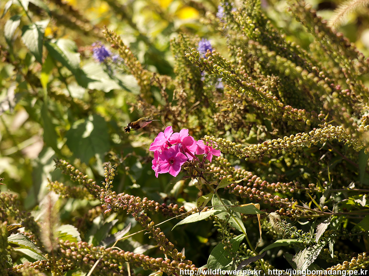 플록스 좌측에 날라다닌 것은 나방 종류로 [박각시나방]입니다. 엄청 날렵해서 찍기가 쉽지 않습니다.