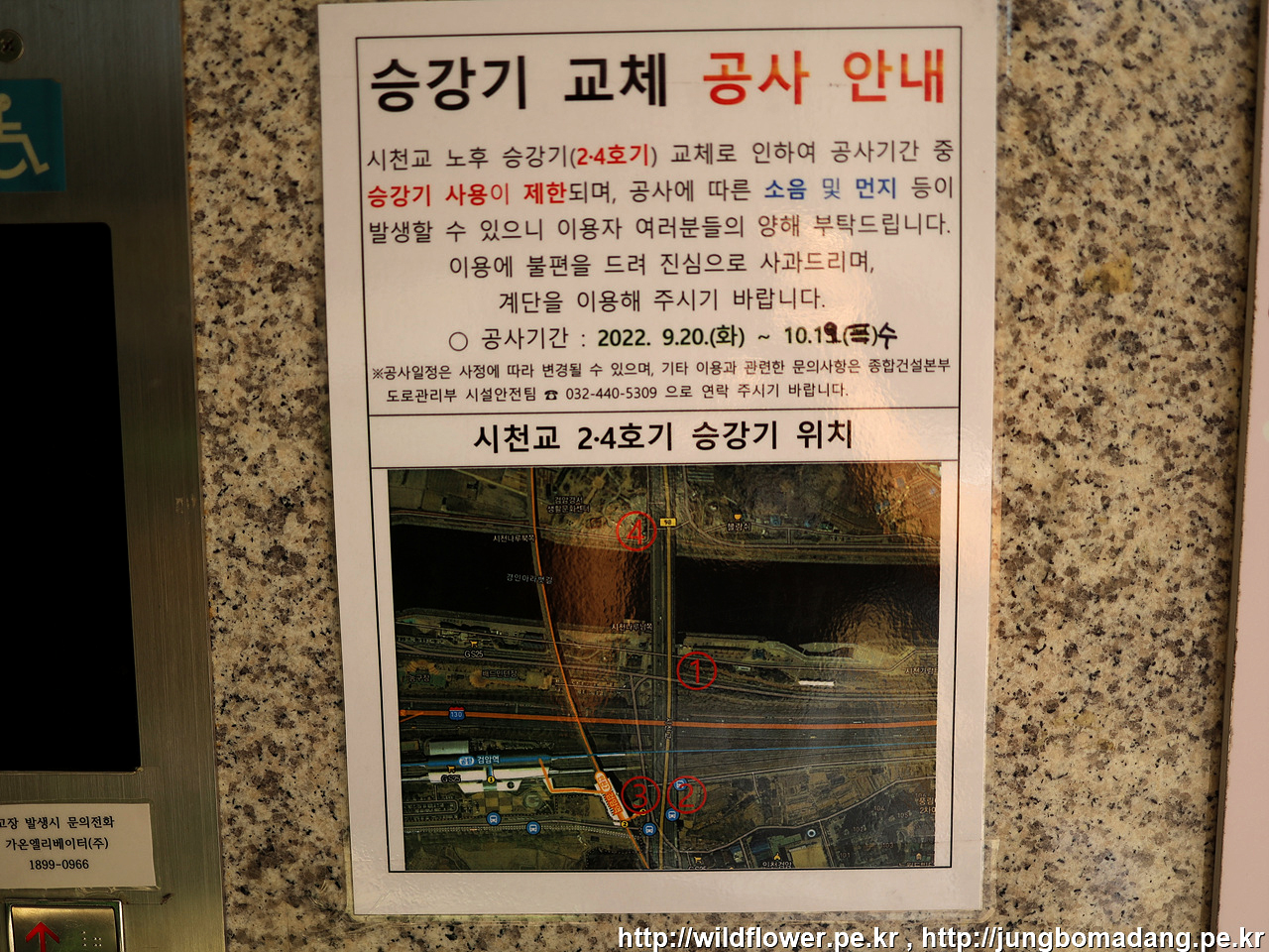 그런데 말입니다? 실컷 엘리베이터 타고 계양대교를 넘어 갔더니 진행방향이 공사중이라고 합니다. 이런 건 다리 건너편에도 안내가 되었으면 하는 아쉬움이 있었습니다. 그렇게 길 찾는다고 20분 헤매이다 결국 다시 계양대교 원래 위치로 되돌아 건너고,