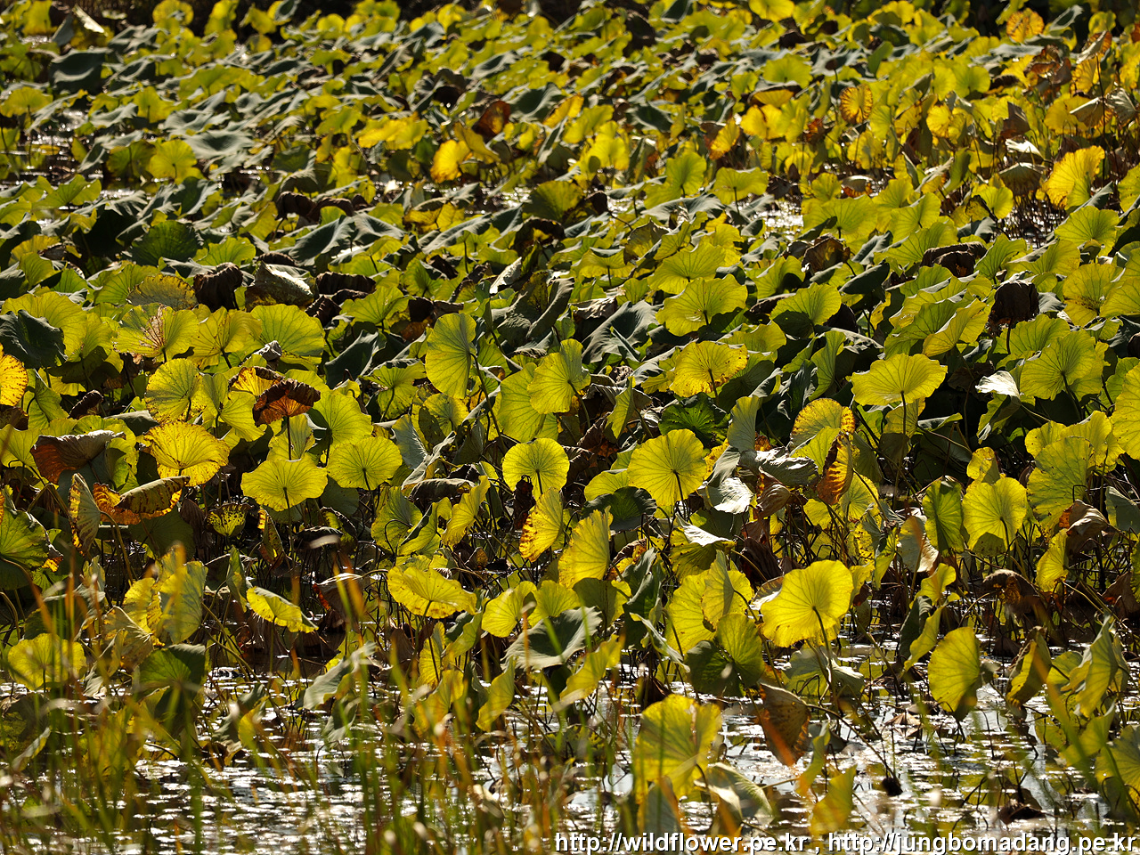 연꽃의 꽃은 여름에 피었을테고, 지금은 꽃이 없습니다.