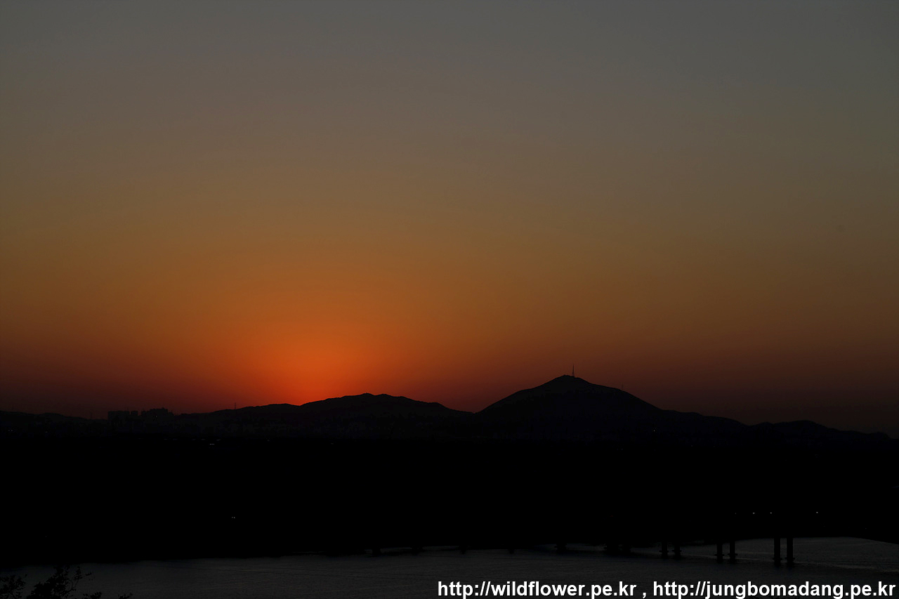 아직 완전히 해가 지지는 않았지만, 산에 가려서 보이지 않습니다.